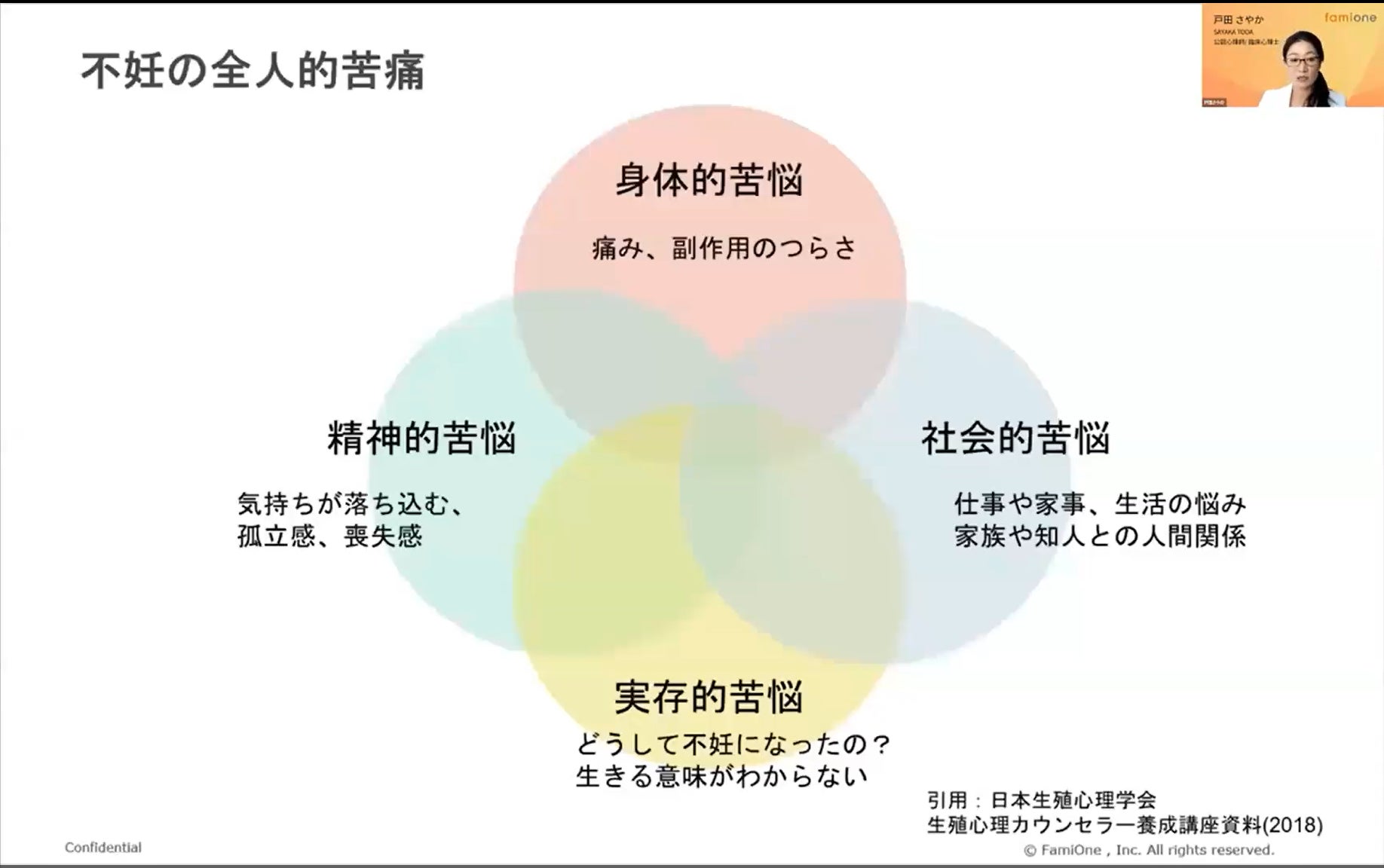 また、臨床心理士/公認心理師戸田からは不妊に悩む方の心理状況や、他職種連携についてお話させていただきました。