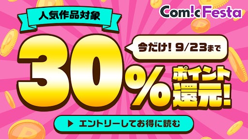 対象作品の購入金額に対し、30%分のComicFestaポイントを還元いたします(最大5,000ptまで)。
