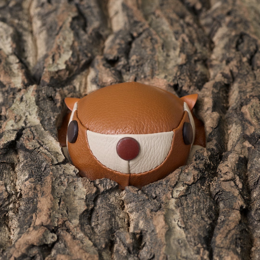 その柔らかなフォルムやいきいきとした様子をレザーで表現するため、くりっとした瞳や小さな耳といったパーツから、丸みのある顔全体に至るまで、複数のパーツを一つひとつ手作業で丁寧に縫い合わせています。