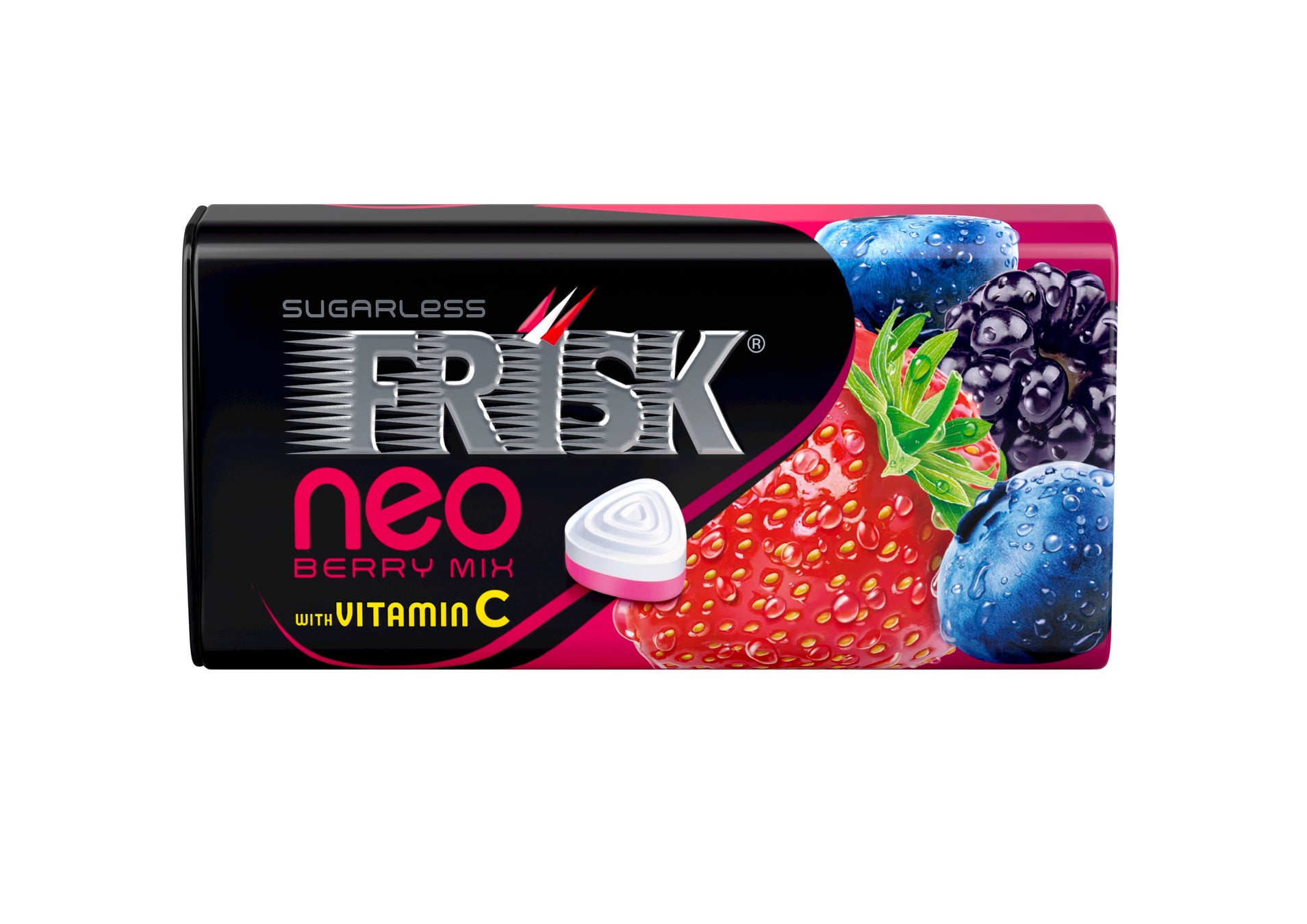 「フリスク ネオ ベリーミックス」は、ジューシーな大粒タブレット「フリスク ネオ」から期間限定で発売する「ベリーミックス」フレーバーです。ストロベリー、ブルーベリー、ブラックベリーなどの様々なベリーを合わせた濃厚で甘酸っぱい味わいです。ビタミンCを配合しています。