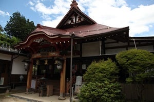 天台宗の古いお寺です。武田信玄は野田城の戦いで病にたおれ甲斐へと帰国の途上で亡くなりました。その場所が駒場(現阿智村)の地であり、遺骸を安置したのが長岳寺といわれています。遺品として、信玄公の兜の前立て二種類が寺宝として所蔵され十三重の供養塔があります。