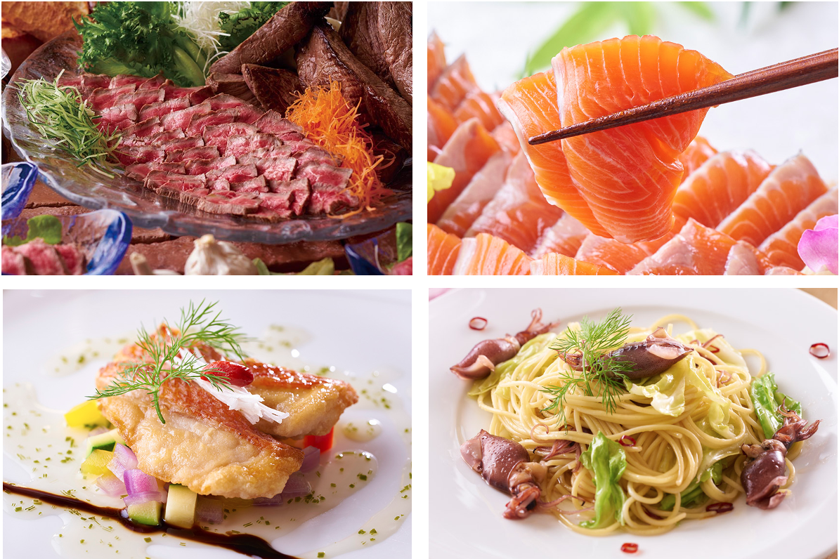 お魚とお肉料理、欲張りに楽しめるバイキング