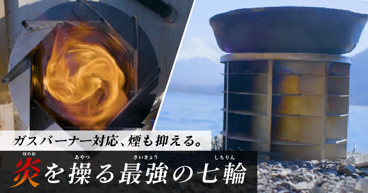 長年の研究で開発した「炎の旋回構造」により、キャンプやアウトドアシーンでの悩みを解決します!