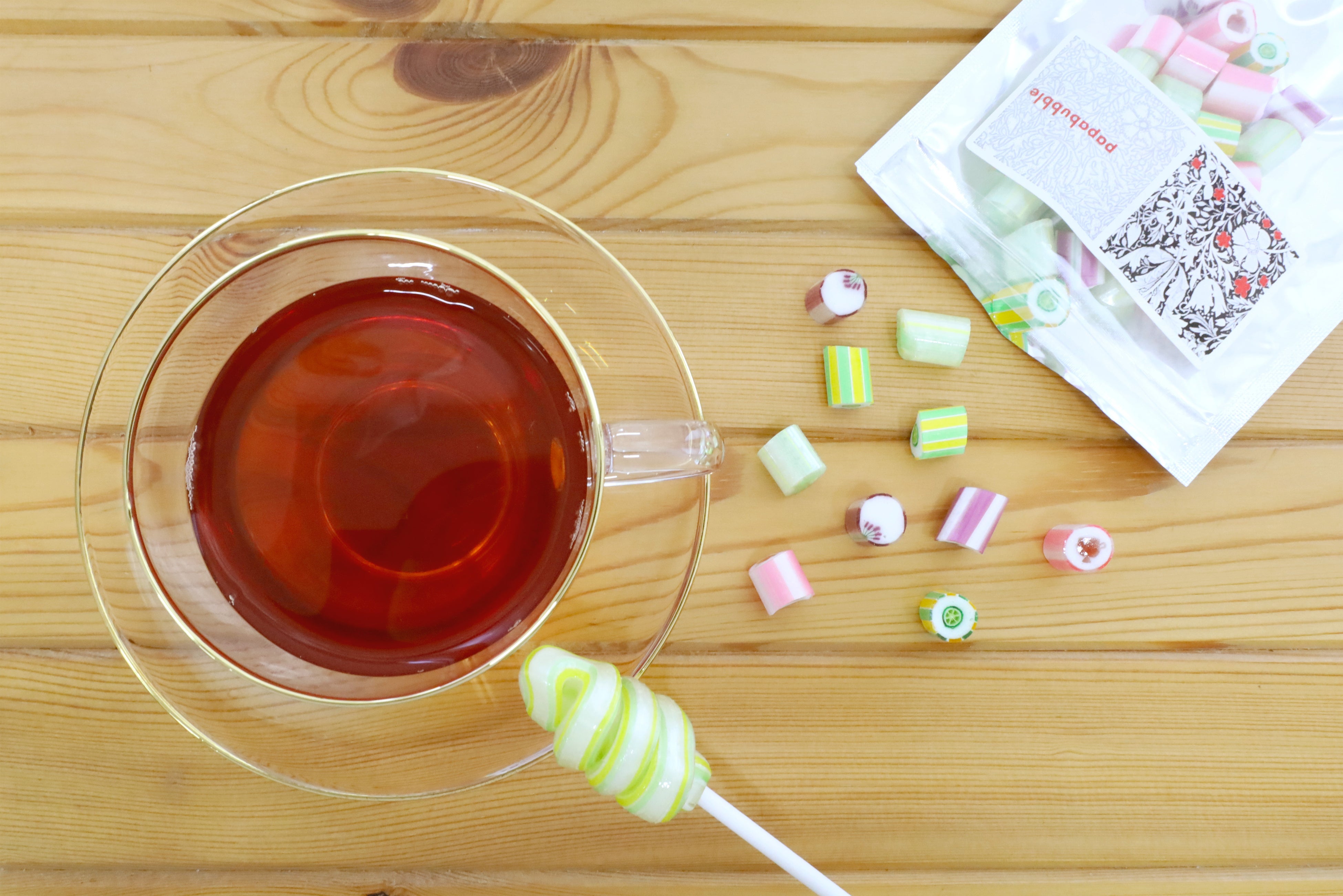 また、フレーバーティーをしっかり堪能したいお客様には、フレーバーマドラーとして味わえる、のど飴ペティもご用意しています。ペティは、女性に人気のかわいい小さなロリポップ(棒付き)キャンディ。マドラーの代わりにも使えるペティは、たっぷりフレーバーティーを満喫できます。