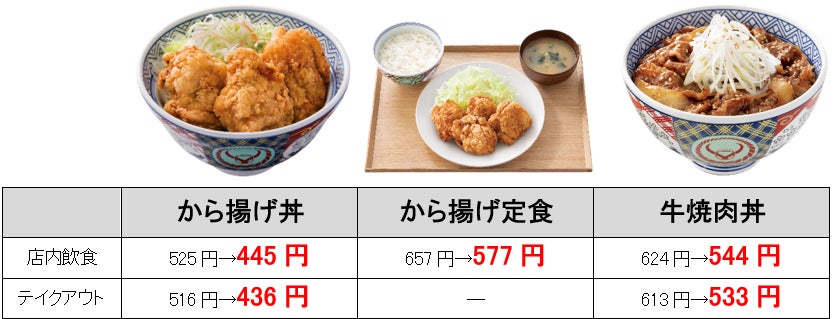 対象商品は「牛丼」をはじめ丼・皿・カレー・定食メニュー60種類以上です。店内飲食の場合、来店した小学生以下のお子様を対象とし、「牛丼」並盛は通常税込価格が448円のところ税込価格368円の特別価格で、テイクアウトの場合はテイクアウト特別価格360円(通常税込価格は440円)でお子様の人数分提供します。テイクアウト利用時はお子様の来店、同伴の必要はありません。お子様の人数を会計時にお伝えください。