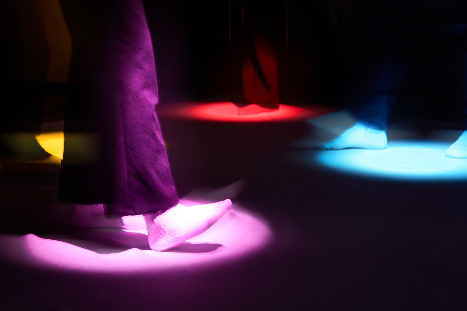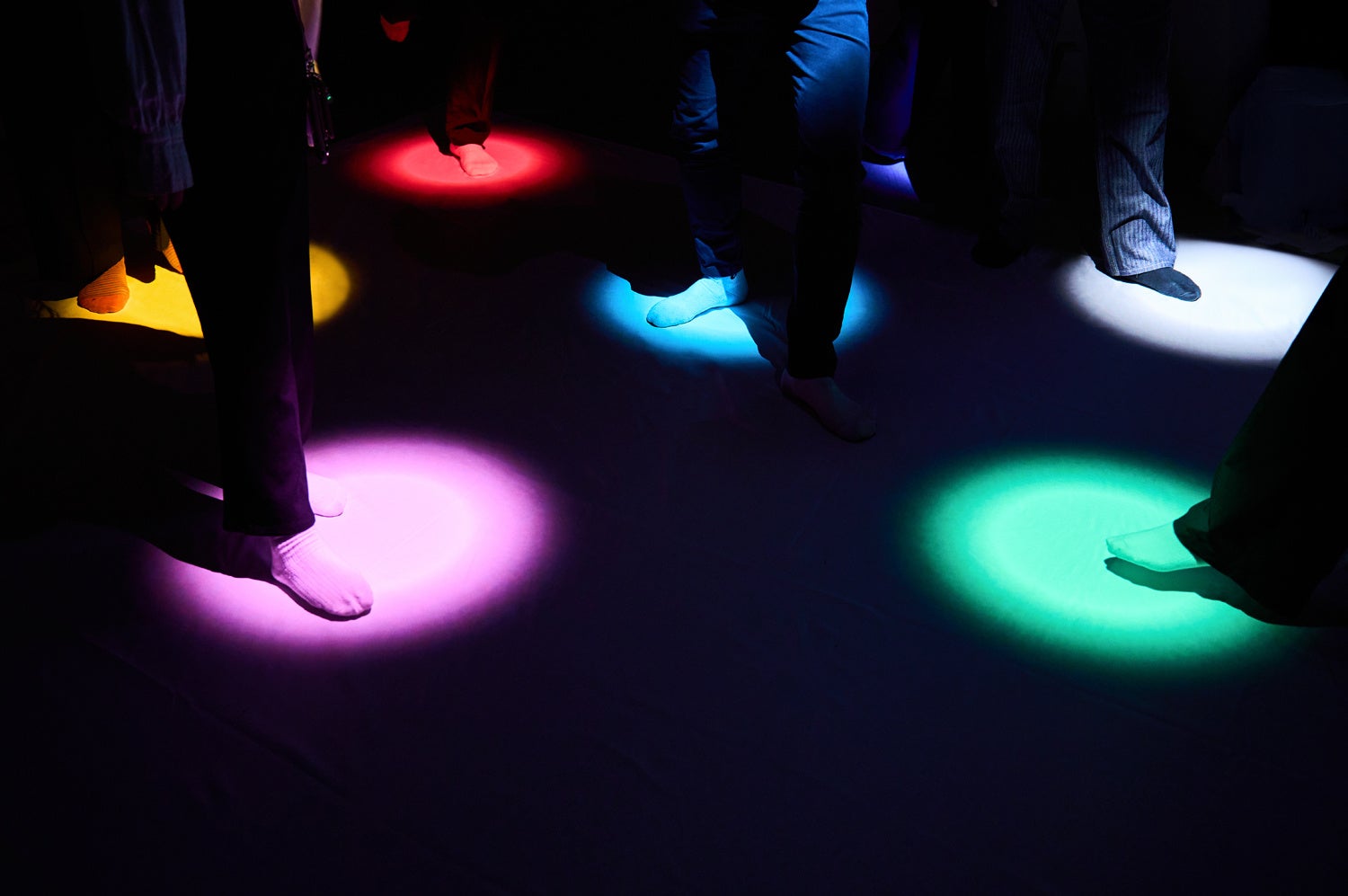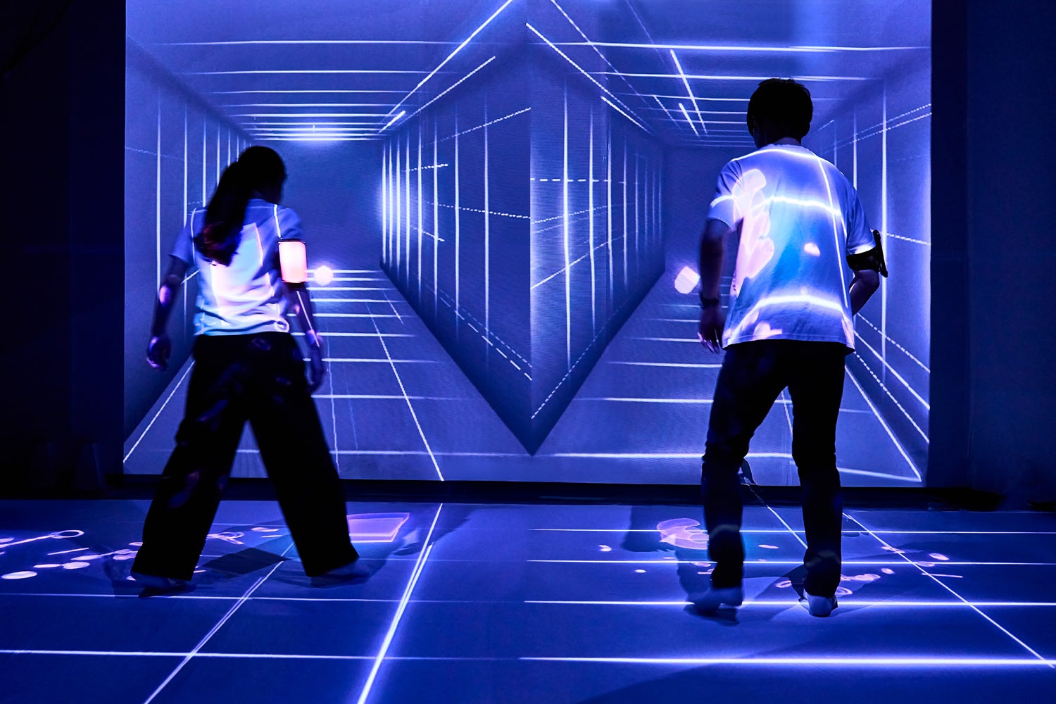 3rd Field「LIGHT(ライト)」は、光とリズムに導かれて自然と体が動き出す新感覚ステージです。体験者それぞれに付与された“MY COLOR”の光を追いかけたり、踏んだり、触れたりすることで、上半身も含めた全身運動を楽しめます。動きに連動してイヤホンから流れる“MY SOUND”も変化し、音の変化を感じながら、身体を動かすことの心地よさや楽しさを体感いただけます。