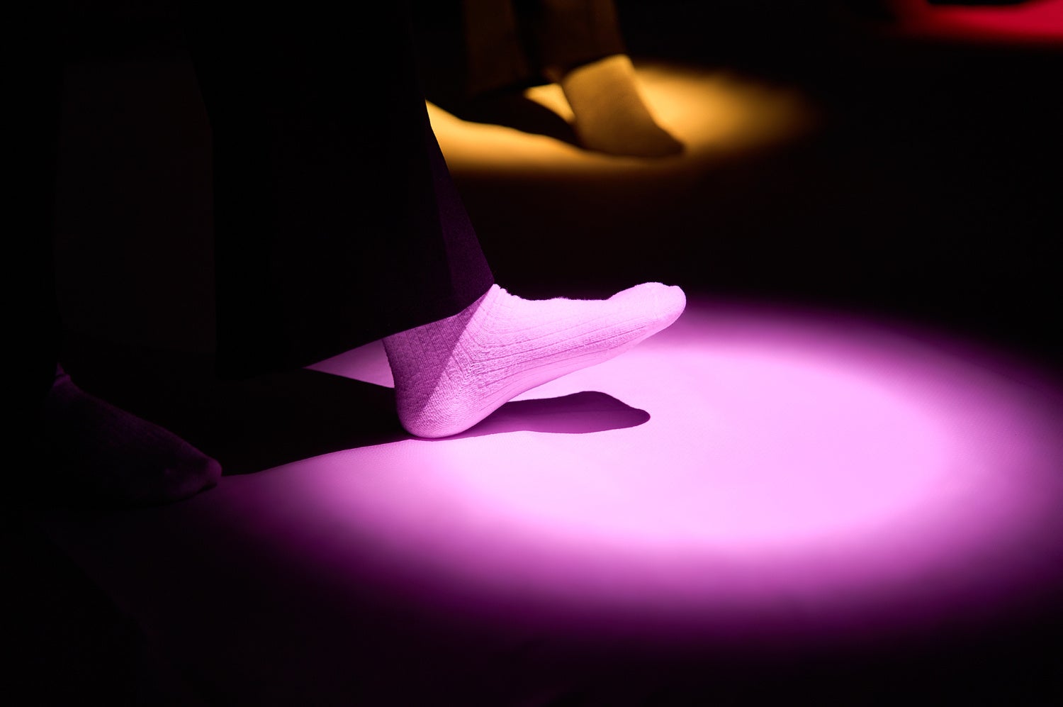 2nd Field「WARP(ワープ)」は、日常の喧騒を遮断し、感覚を研ぎ澄ますための静かな準備のための空間です。ここでは、アシックスが掲げるブランド・スローガン「Sound Mind, Sound Body」を、情緒的な映像と音で表現します。言葉による説明ではなく直感的にココロに届く光と音の演出によって、これから始まる没入体験への準備を整えていただきます。