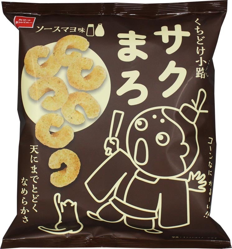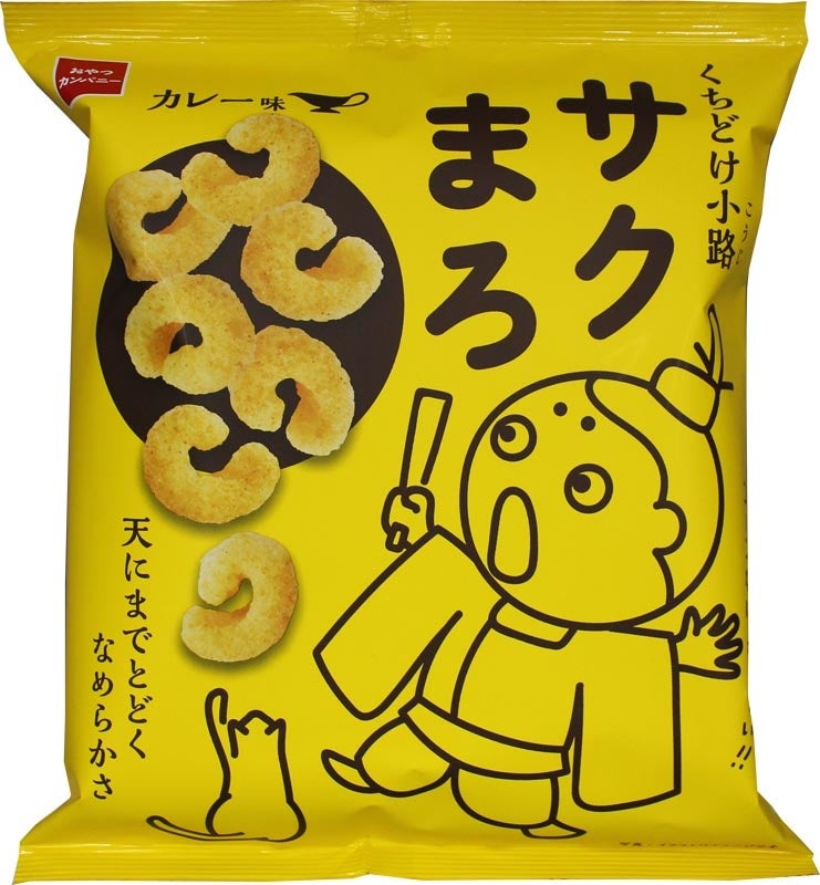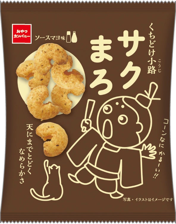 新キャラクター平安人「サクまろ」が登場するコミカルな見た目のパッケージは、みんなをほっこりとした気分にし、自然と笑顔やコミュニケーションが生まれる楽しいお菓子になりました。おつまみ感覚でお酒と一緒に楽しむ大人世代と、シュワッと爽やかな炭酸ジュースとともに楽しむ子ども世代で、世代を超えた笑顔溢れるおやつ時間をお楽しみください。