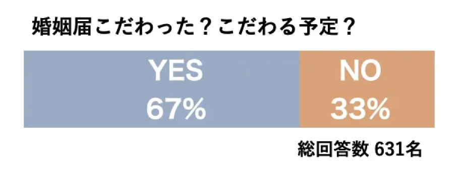 - 全体の67%の女性が「婚姻届」はこだわると回答。