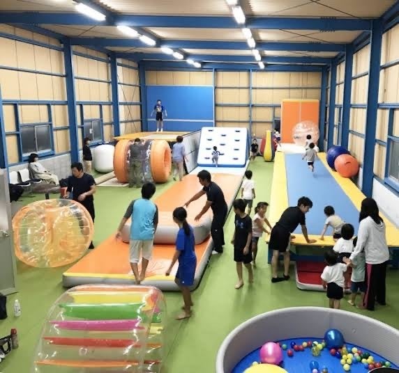 保育園・商業施設向けにAスライド、ロックウォール、トランポリンなど全6種を展開し、非金属構造×衝撃吸収の安全設計で多彩な遊び場を実現
