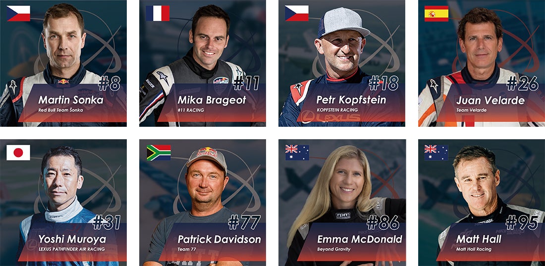「AIR RACE X」は、世界最高の飛行技術を持つ8名のパイロットが、最高時速400km、最大重力加速度12Gの中、レース専用小型機で操縦の正確さとタイムをリモート形式で競い合う、最新技術を活用した空のモータースポーツです。パイロットたちは世界各地に散らばる拠点に設定された同一のレーストラックを実際に飛行し、機体に搭載されたセンサーによって計測された、誤差3cmという精緻なフライトデータを集約してタイムを競います。