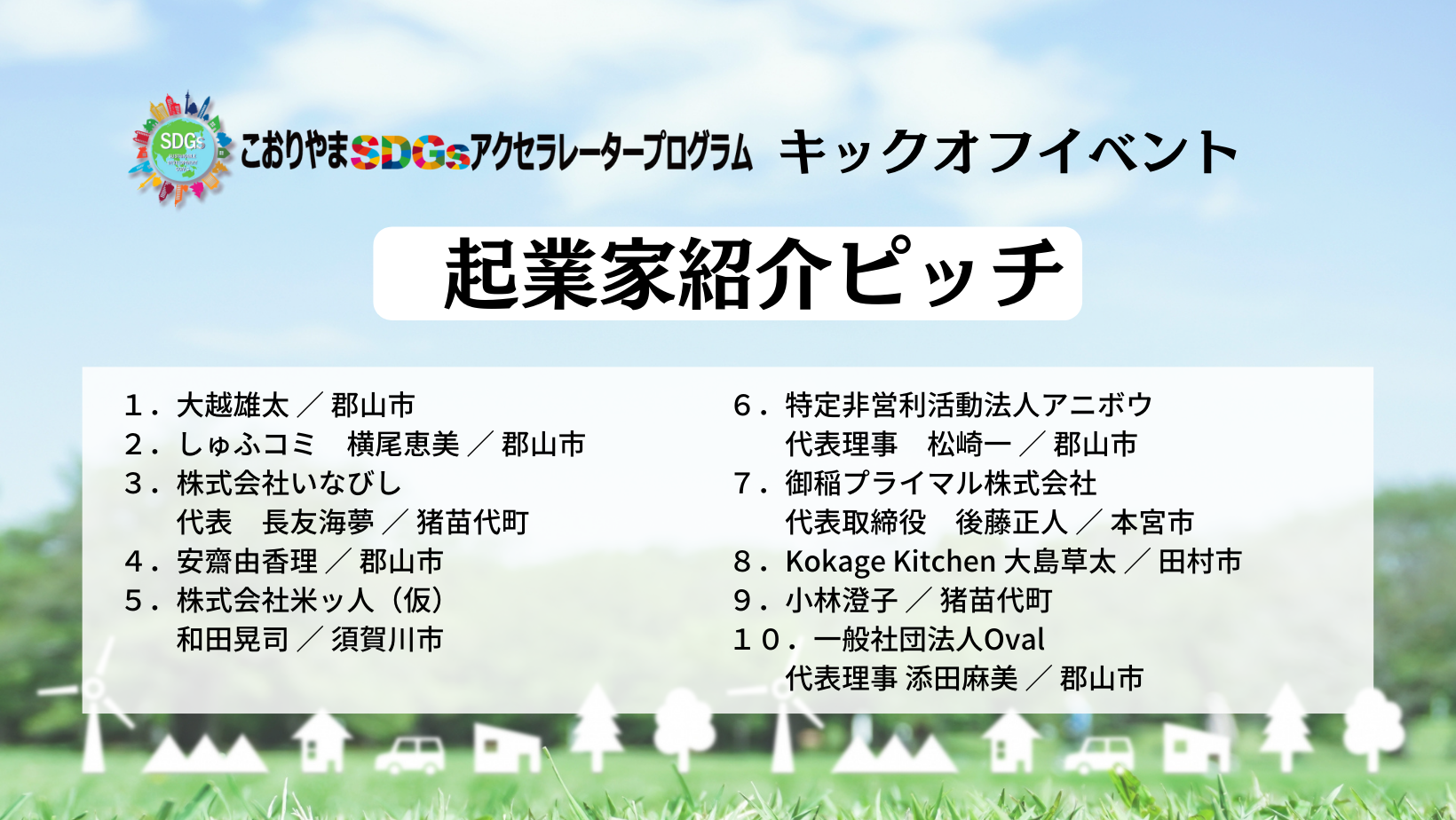 こおりやまSDGsアクセラレータープログラム採択者10名によるピッチ(6分×10名)