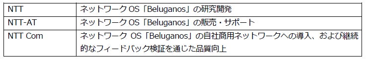 また、NTTコミュニケーションズ株式会社(以下、NTT Com)は、自社の商用ネットワークに「Beluganos」搭載のホワイトボックス装置を導入し運用をします。3社は連携し、NTT Comへの導入を通じて確認された高い信頼性と機能性を持ち合わせたネットワークOSを市場に供給することで、お客さまのネットワーク品質の信頼性・機能性の向上に加え、構築時の柔軟性・経済性の向上を実現していきます。