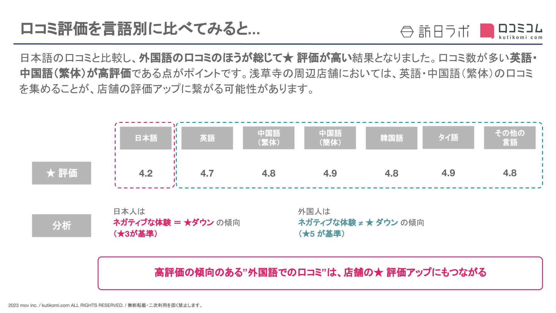 ・口コミ評価は日本語より外国語のほうが★0.5以上高いこと