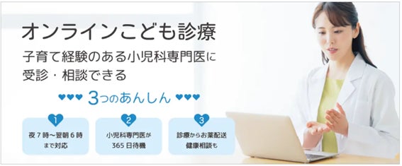 24時間365日医師につながる、オンライン診療・健康相談のサービスを受けることができます。診療においては、自宅への薬の配送やかかりつけ薬局での薬の受け取りなど希望に合わせた対応が可能です。これらのサービスは、保険適用、自治体の子ども医療費助成など、行政支援も受けることができます。