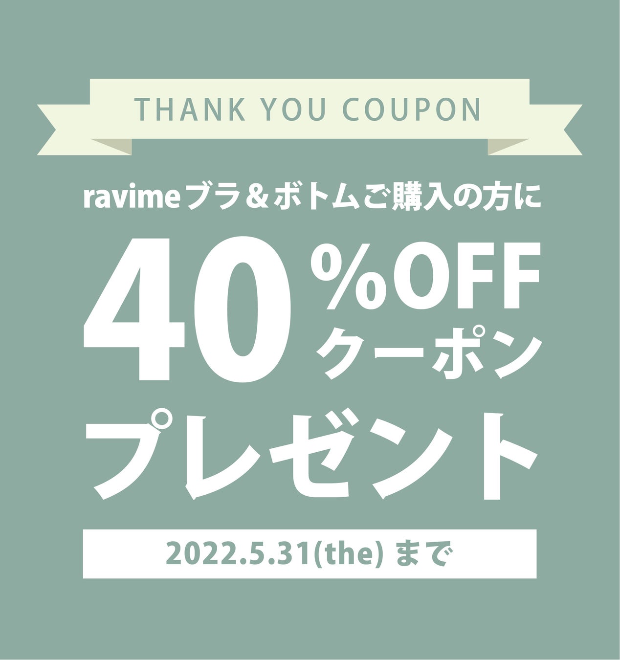 【Thanksクーポンキャンペーン!】ブラ&ボトムご購入の方に、次回使える40%OFFクーポンプレゼント中!