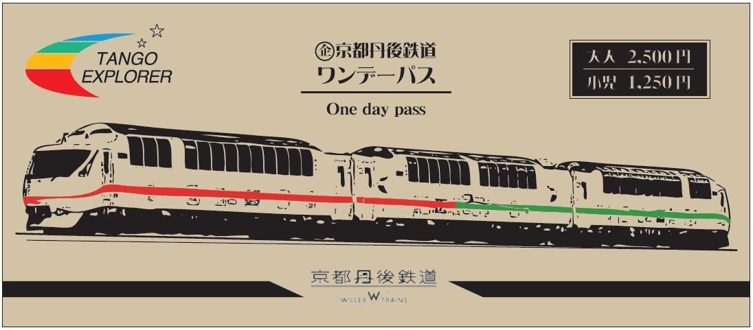 京都丹後鉄道ワンデーパス料金:大人2500円、小児1250円