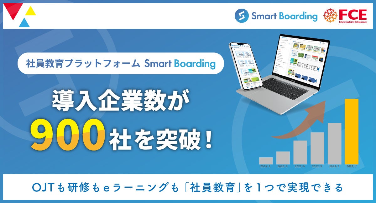 株式会社FCE(本社:東京都新宿区、代表取締役:石川淳悦、東証9564)が提供する、社員教育プラットフォーム「Smart Boarding」(スマートボーディング)は、7月末時点で導入企業数が900社を突破したことをお知らせいたします。