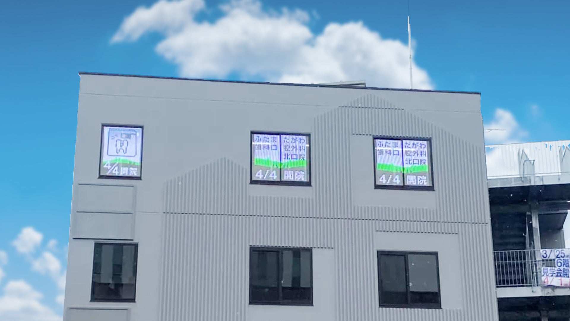 神奈川県横浜市旭区二俣川に新しく開院した「ふたまたがわ歯科口腔外科北口院」の窓面3面にウィンドウビジョンを導入しました。