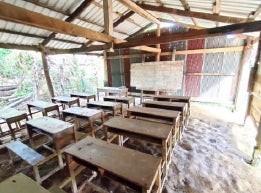 アンロントラック小学校は2000年に開校された、幼稚園児から小学校6年生までの376名が通う小学校です。児童の増加に伴い、2021年に仮設小屋を増築しましたが、小屋には、壁が一方向のみ設置され、床はありませんでした。