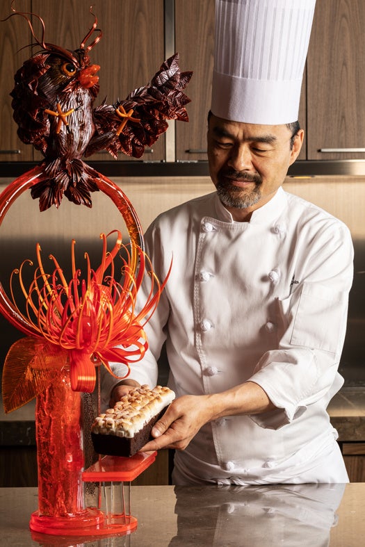 黄綬褒章は、「農業、商業、工業等の業務に精励し、他の模範となるような技術や事績を有する方」に授与される褒章です。後藤は、1979年にパティシエとしての道を歩み始め、1995年には、最高峰ともいわれるパティシエの世界大会「第4回クープ・デュ・モンド・ドゥ・ラ・パティスリー」(フランス・ リヨン)で 個人 飴細工部門1位および日本チーム2位の成績を納め、続く1998年の「世界製菓芸術コンクール」(モナコ ・モンテカルロ)においても 1位となるなど、数々の世界大会で優勝・受賞を果たし、実績を 積んでまいりました。その後、2003年にグランド ハイアット 東京の開業メンバーとして入社。各レストランや宴会場、ペストリーブティックで販売している商品を含むホテル館内で提供されるすべてのスイーツおよびベーカリーを統括するペストリー部門の責任者として勤務し、その品質管理や商品開発に携わっています。また、後進の育成にも力を入れ、後藤の元で学んだメンバーが世界大会で優勝や受賞を経験し、直近の2022年には、日本チーム代表として参加したパティシエが世界大会で準優勝を果たすなど、後藤の技術を継承し、さまざまな場所で躍進しています。
