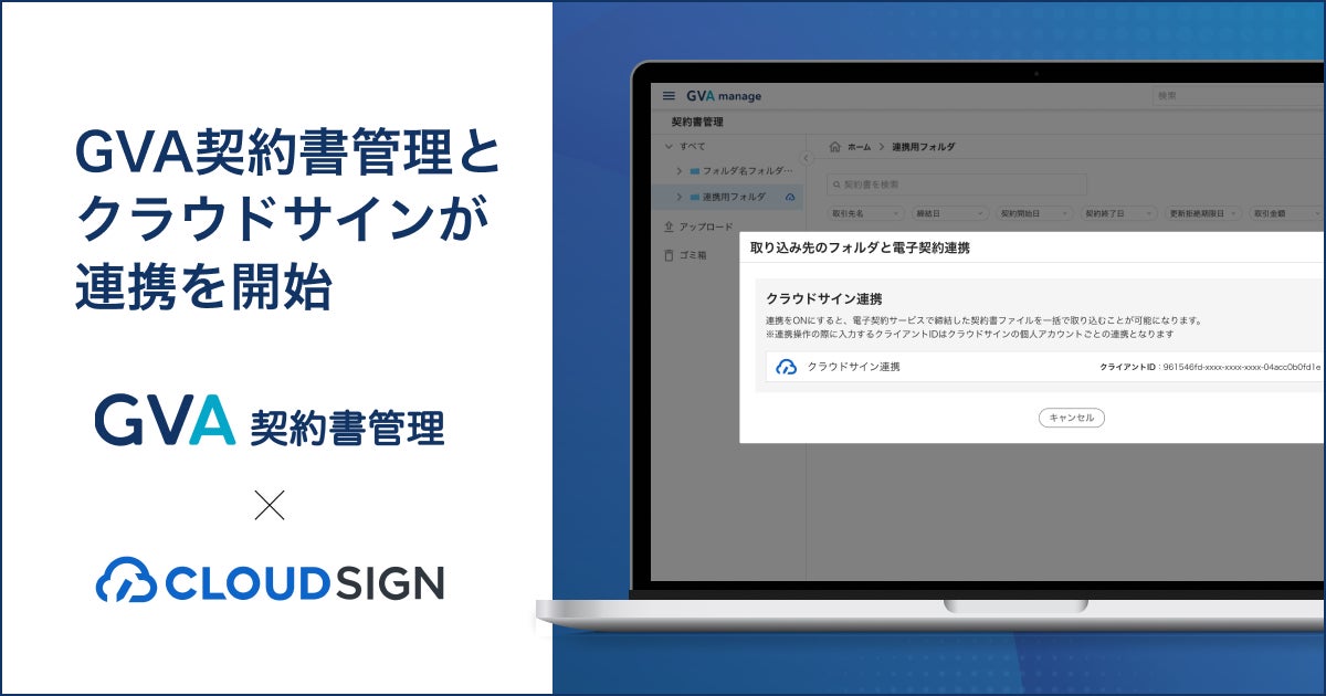 GVA TECH株式会社(本社:東京都渋谷区、代表取締役:山本 俊、以下GVA TECH)は、生成AI契約書管理システム「GVA 契約書管理」が、クラウド上で電子契約を行う「クラウドサイン」との連携を開始したことをお知らせいたします。