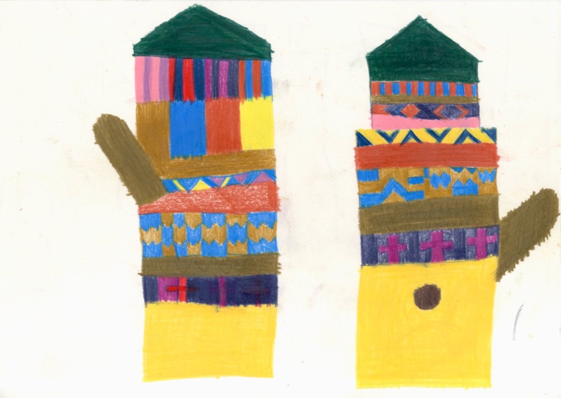 「伊賀敢男留さんのミトンの絵、気仙沼ニッティングの編み手が本物のミトンにできるはず・・!」