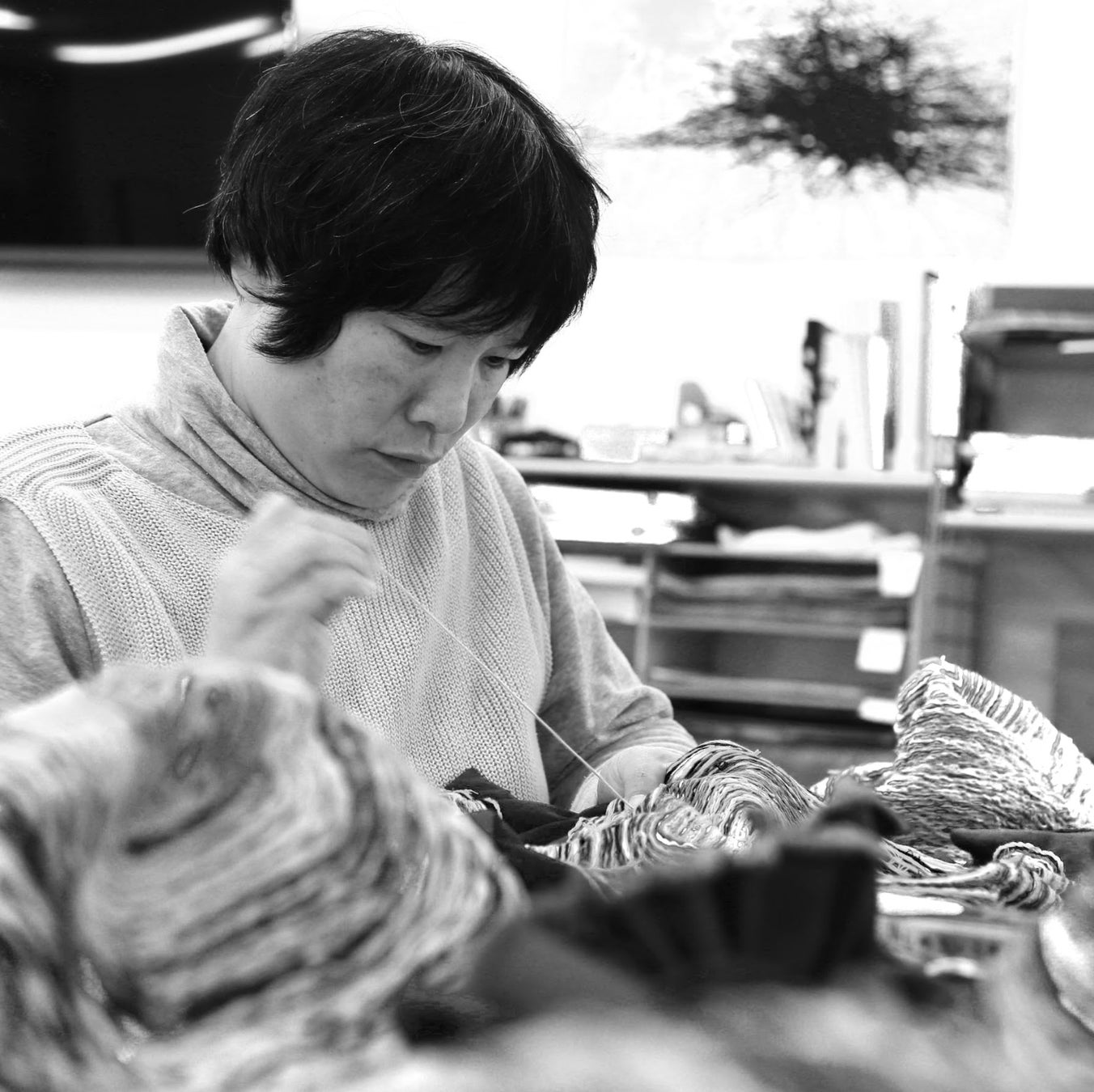 それぞれ表現し創り出す者同士の出会いから生まれた、ニットとアートのコラボレーションを、ぜひご覧下さい。