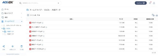 AOS IDXは、チームでデータを共有できるチームドライブを搭載しているため、リアルタイムでのデータ共有と協業を可能にします。これは、複数の関係者が同時に問題に対処し、迅速に解決策を見つけることを可能にします。