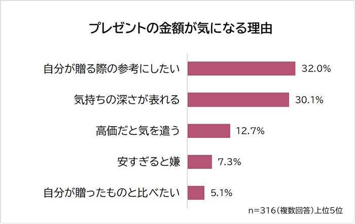 「プレゼントの金額が結構・ある程度は気になる」と答えた316人に気になる理由を聞きました。