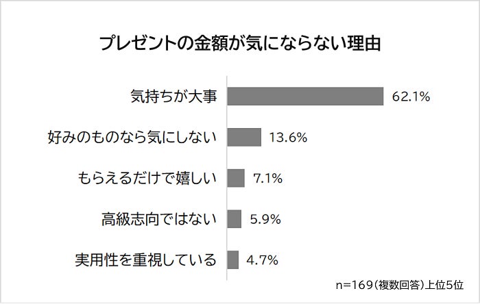 「プレゼントの金額は全く気にならない」と答えた169人にも理由を聞きました。