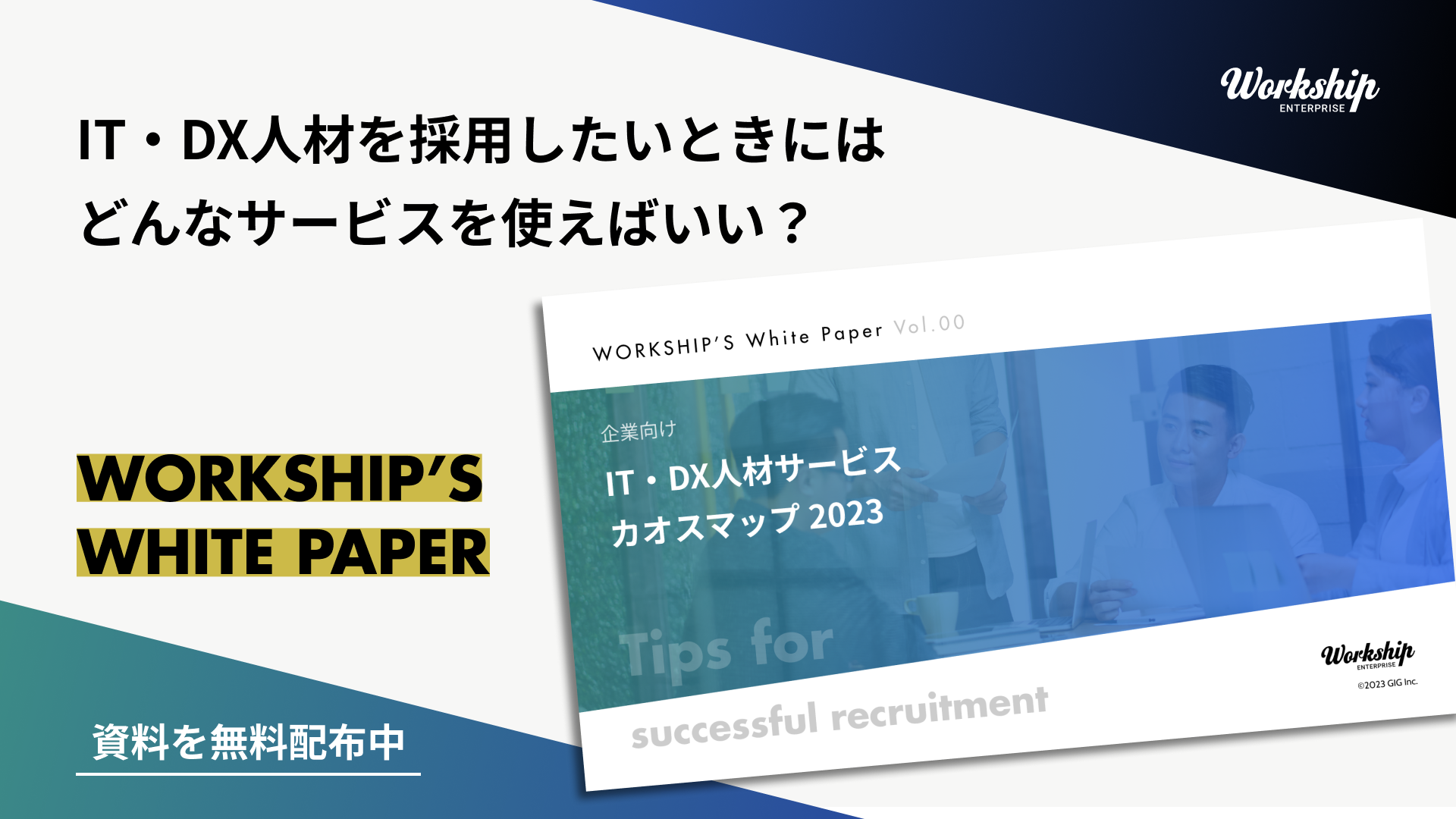 フリーランス・副業人材の採用・求人サービス『Workship(https://goworkship.com/)』を運営する株式会社GIGは、「【2023年版】IT・DX人材サービスカオスマップ」と題した無料のホワイトペーパー提供を開始いたします。