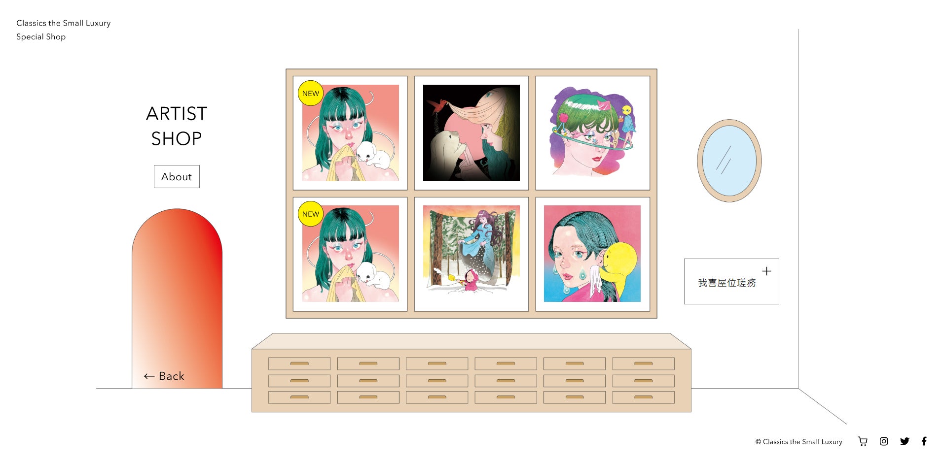 「CLASSICS the Small Luxury Special Shop」では、我喜屋 位瑳務氏のこれまでの商品を展開した「ARTIST SHOP」をはじめ、今の時期にお勧めのギフトを揃えた「GIFT SHOP」や、VRショップなど、4つのSHOPからブランド体験をお楽しみいただけます。