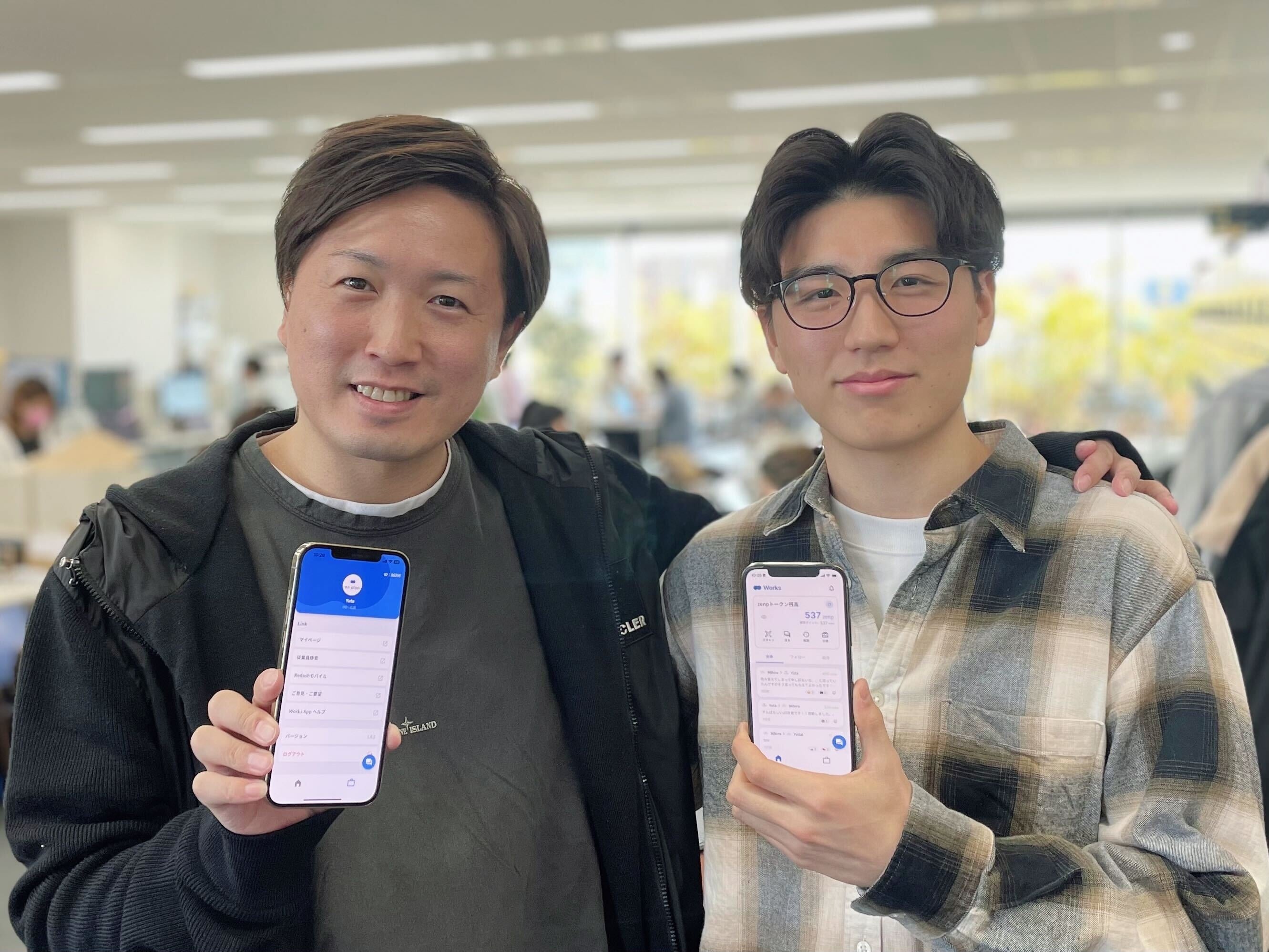 左:システムチーム エンジニア 中村祐太(バックエンド処理・API / Flutter開発担当)