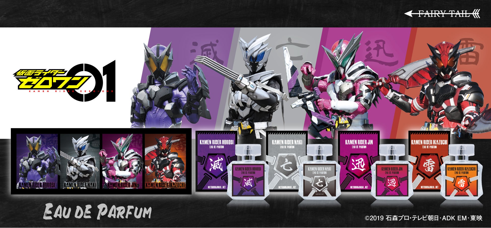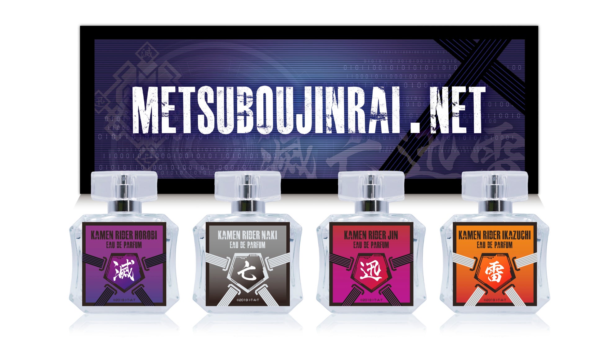 仮面ライダーゼロワンより、滅亡迅雷.netの4人の幹部・滅、亡、迅、雷をイメージした香水がセットになって登場!