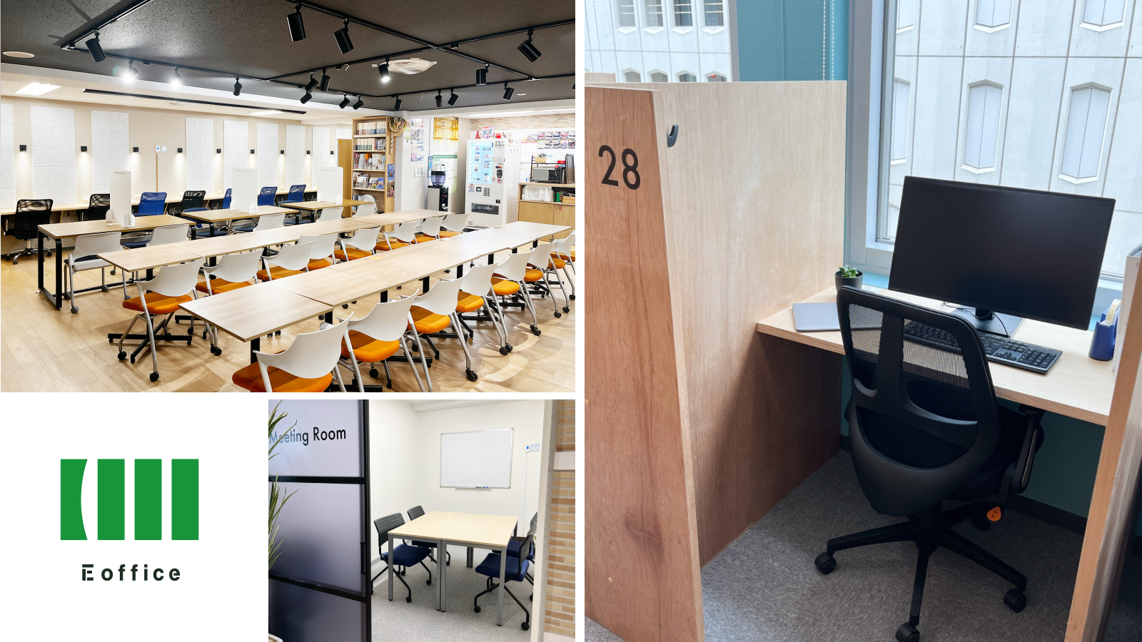 レンタルオフィスは鍵付き個室1〜3名用、専用デスク1名用など幅広くご用意しており、登記や住所利用も可能。