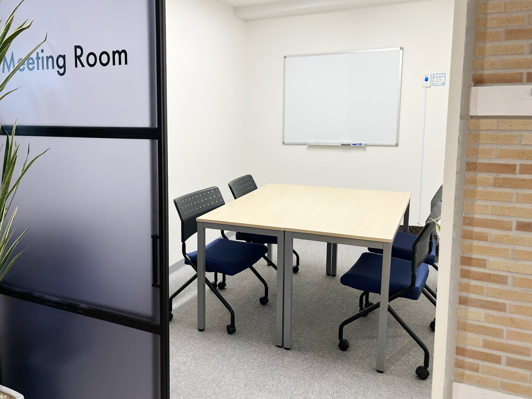 最大8名で利用できるミーティングルームにはホワイトボードが完備。会議はもちろん大切な商談やプレゼンテーションに最適なスペースです。