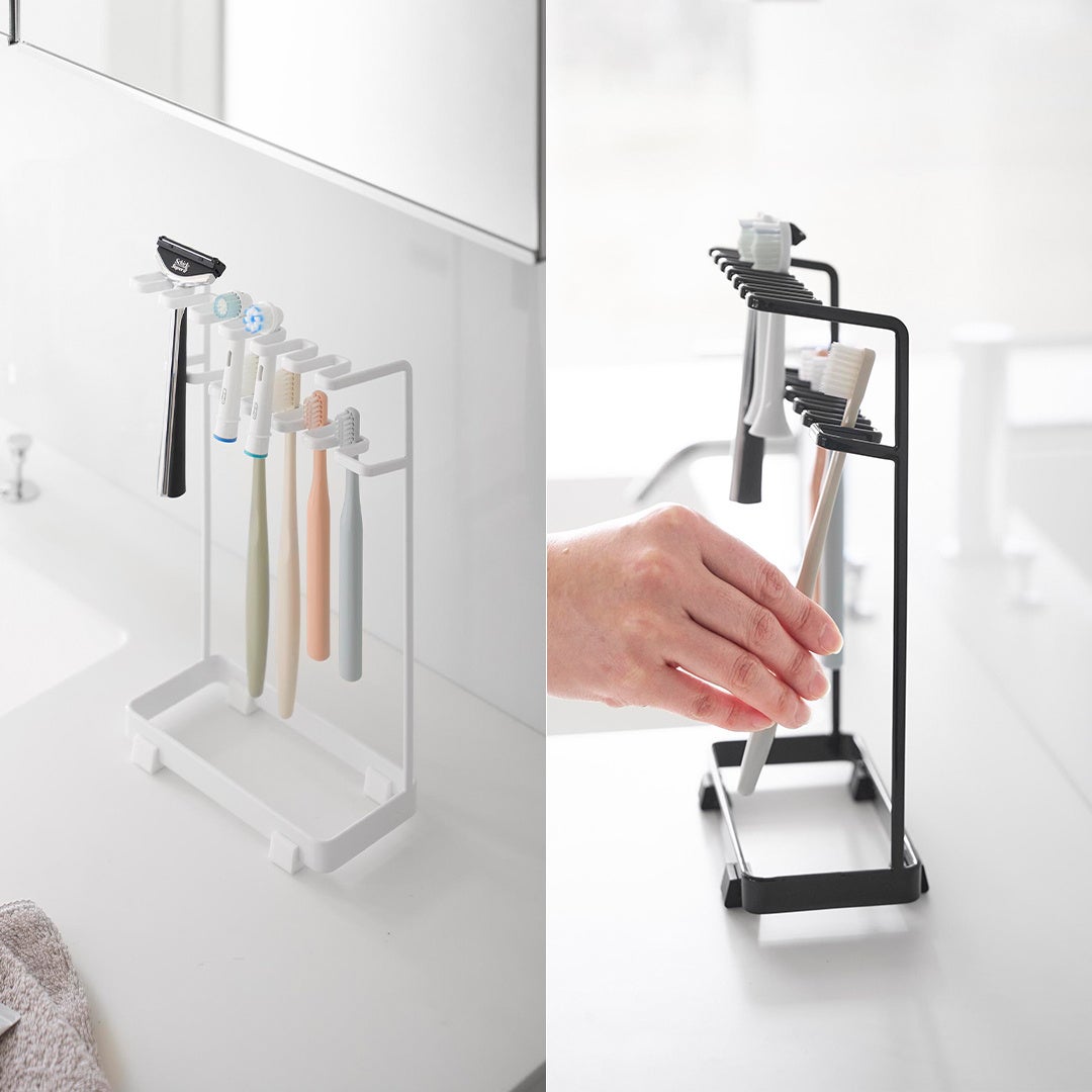 歯ブラシや電動歯ブラシ用替えブラシ、シェーバーも一緒に収納できる2段式の歯ブラシ&替え歯ブラシスタンドです。