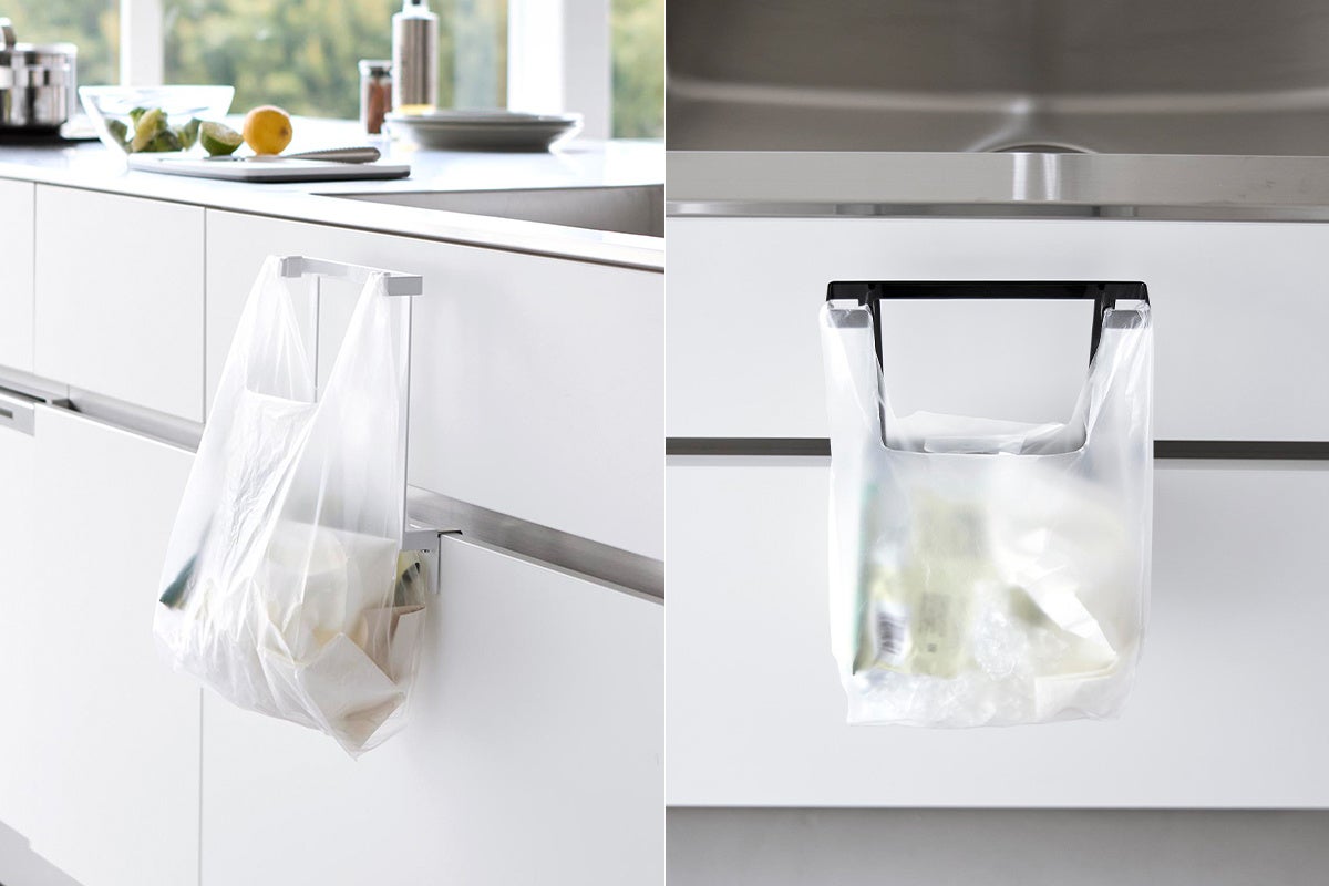 レジ袋を引っ掛けるだけで簡易ゴミ箱として使えるレジ袋ハンガーです。