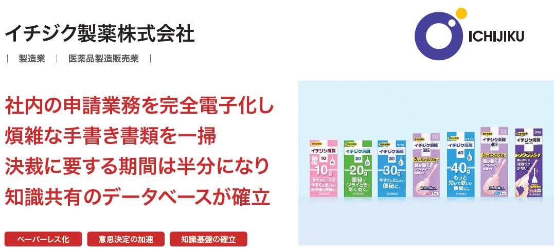 イチジク製薬株式会社が、クラウド型ワークフロー「X-point Cloud」導入によりペーパーレス化を実現し、決裁に要する期間を1/2以下に短縮