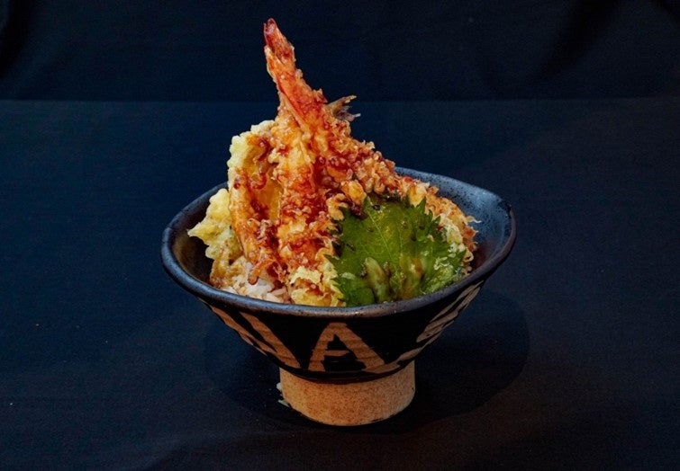 揚げたてサクサクの香ばしい衣を纏ったエビ天、さかな天、野菜天と甘ダレの黄金比。最後は薬味とだし汁をかけてお茶漬けに。