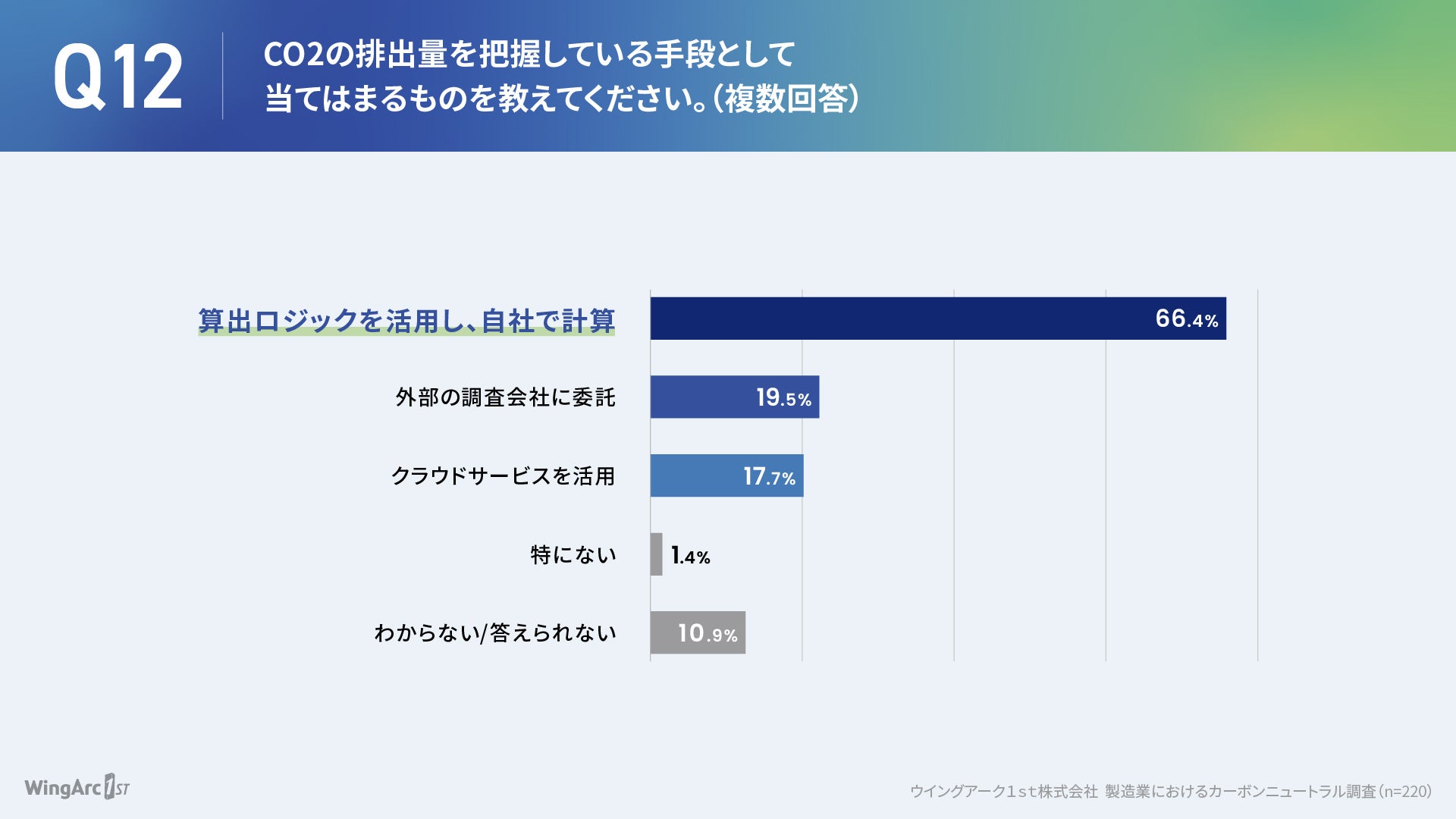 12.うち66.4%が、CO2排出量を「算出ロジックを活用し、自社で計算」している実態