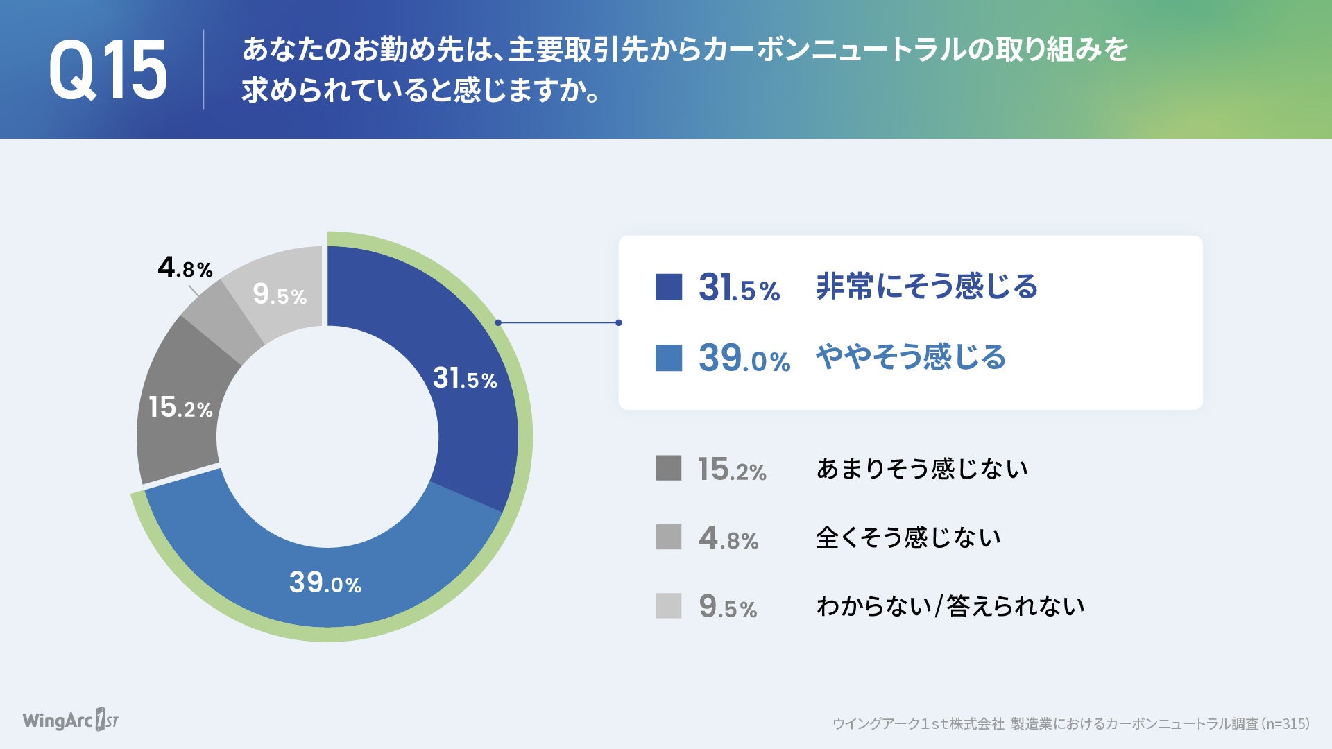 15. 70.5%が、主要取引先からカーボンニュートラルの取り組みを「求められている」と実感