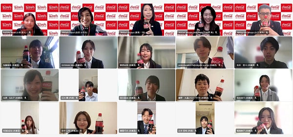 ウェルカムセレモニーはオンラインで執り行われ、公益財団法人コカ・コーラ教育・環境財団理事の津垣 修一氏から動画メッセージが寄せられました。奨学生は、「コカ·コーラ」を飲みながら、当社の担当部署社員と交流し、親睦を深めました。