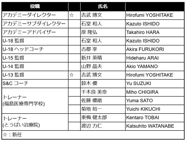 2025シーズン アカデミースタッフ体制についてのお知らせ