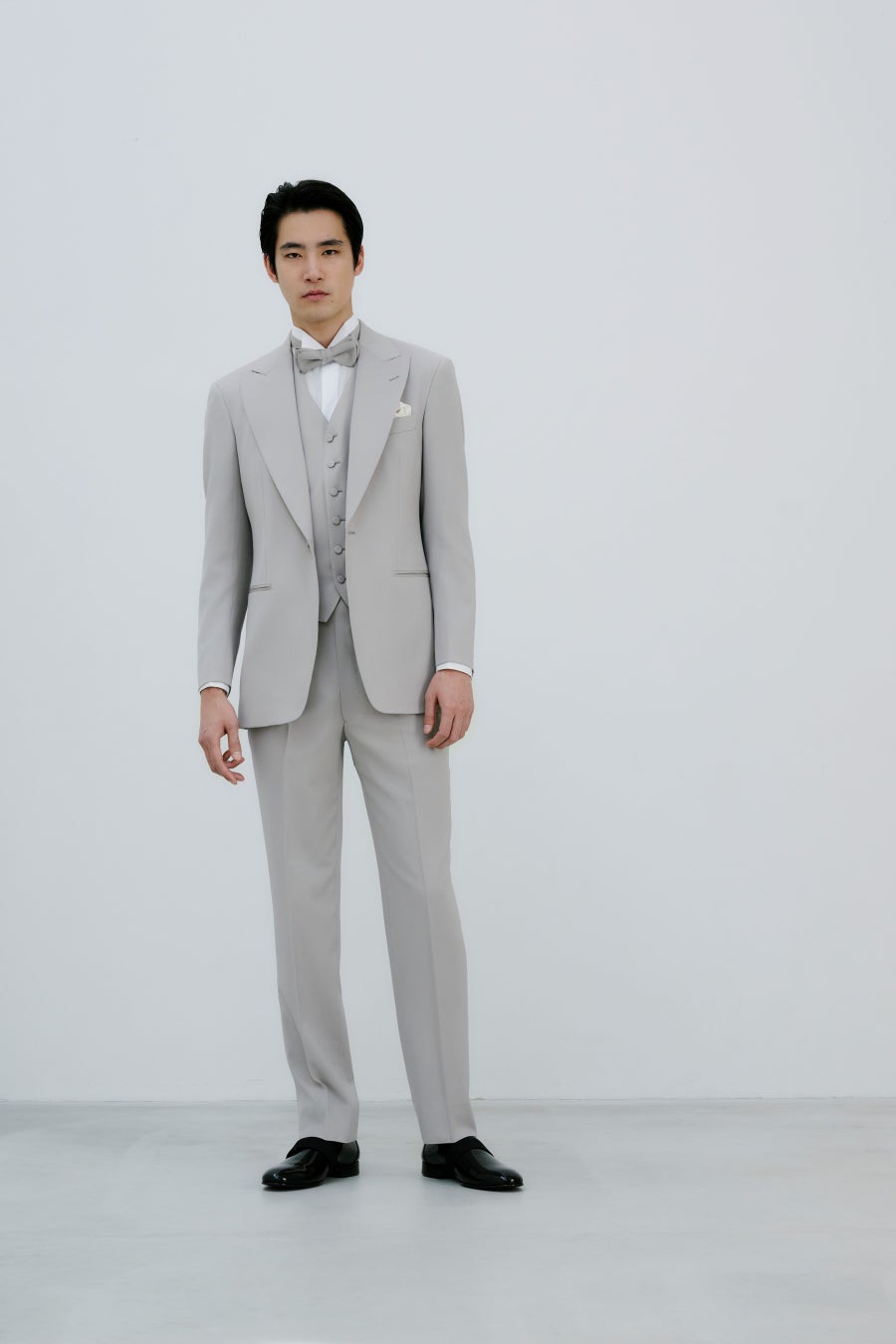 イタリアの老舗生地メーカーZIGNONE(ジニョーネ)の上質な生地を使用し、エレガントで大人の色気を演出するフォーマルタキシード。やや長めの着丈が洗練された印象を与え、存在感のある幅広のピークドラペルがクラシックな品格をプラス。さらに、6つボタンベストがフォーマルな雰囲気を引き立て、格式高いスタイルを完成させます。シンプルながらも細部にこだわったデザイン、 美しい生地の風合いと品格のある佇まいが魅力の一着です。