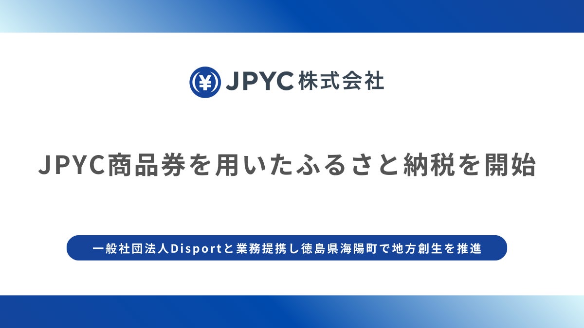 日本円ステーブルコインのJPYC|昨年に引き続きJPYC商品券を用いたふるさと納税を開始。一般社団法人Disportと業務提携し徳島県海陽町で地方創生を推進します。