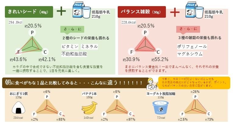 ラインナップは、美容(きれいシード)と健康(バランス雑穀)の2種をご用意