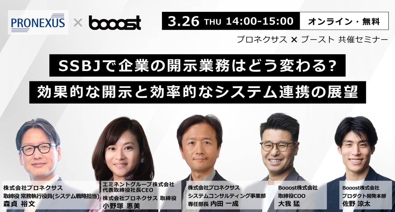 Booost、プロネクサスと共催で「SSBJ基準開示対応」オンラインセミナーを開催