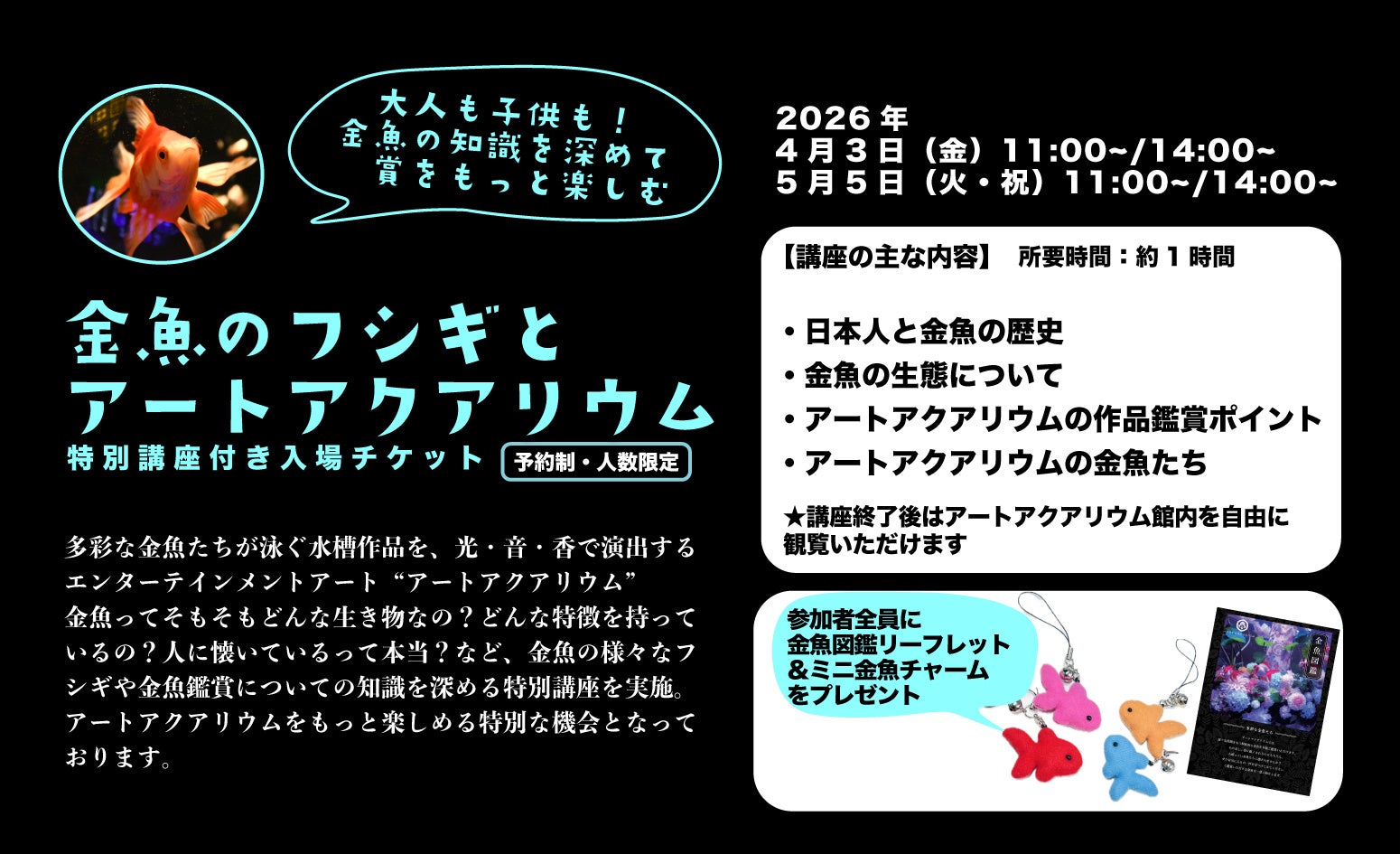 「金魚のフシギとアートアクアリウム講座付き入場券」をご予約ください